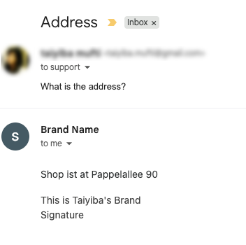 | Was der Kunde in einer E-Mail sieht | Was ein Agent oder Administrator im Ticket sieht |