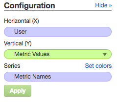 - Series: Legt die Werte fest, die auf dem Diagramm angezeigt werden. Die Beschriftungen mit den Werten erscheinen in der Legende unten im Diagramm. Diese Position steht nur als Option zur Verfügung, wenn es mehrere Metriken und Attribute gibt.