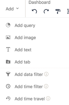 - Stellen Sie sicher, dass sich das Dashboard, das Sie geöffnet haben, im Bearbeitungsmodus befindet. Klicken Sie im Dashboard Builder im Dashboard-Anpassungsmenü auf Hinzufügen.