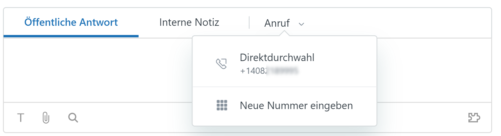 Agenten können direkt von einer Ticketkonversation aus einen Anruf tätigen. |