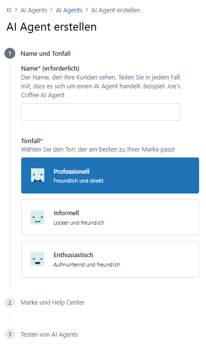 Die Seite „AI Agent erstellen“ wird geöffnet.