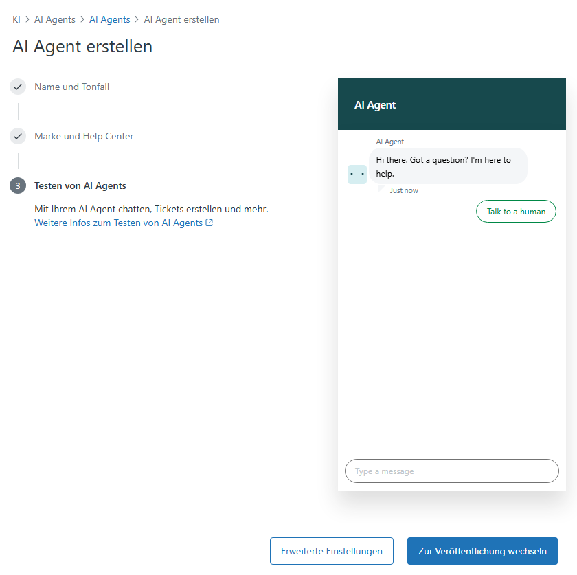 - Testen Sie Ihren AI Agent, um sicherzustellen, dass er wie erwartet funktioniert.