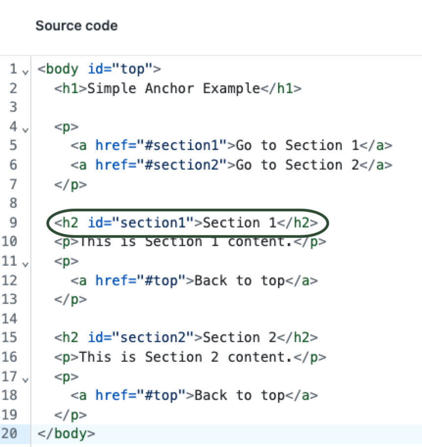 Legen Sie zunächst ein Ankerziel fest, indem Sie dem Abschnittstitel ein eindeutiges