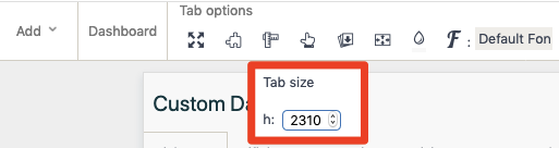 - Geben Sie einen neuen Wert für die Höhe der Registerkarte an (numerischer Wert in vertikalen Pixeln). Die Höhe der Dashboard-Registerkarte wird angepasst, wenn ein neuer Wert eingegeben wird.