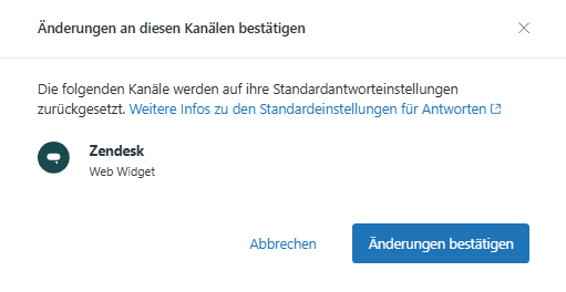 - Klicken Sie auf AI Agent veröffentlichen.Wenn Sie einen AI Agent erneut veröffentlichen, den Sie: - aus allen Kanälen entfernt haben, wird ein Bestätigungsdialog angezeigt. Lesen Sie die Hinweise und klicken Sie auf Änderungen bestätigen.