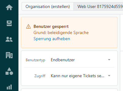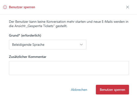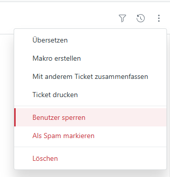 Agenten können Benutzer in einer laufenden Konversation direkt in der Oberfläche des jeweiligen Tickets sperren.