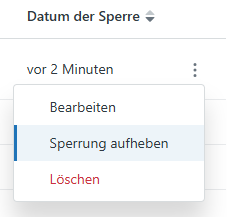 In der Liste „Gesperrte Benutzer“ erscheinen alle Benutzer, die gesperrt wurden.