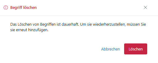 3. Klicken Sie auf das Optionsmenüsymbol () neben dem gewünschten Begriff und dann auf Löschen.
