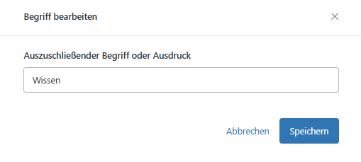 Wenn Sie einen ausgeschlossenen Begriff aktualisieren oder ändern möchten, können Sie in direkt in der Liste der ausgeschlossenen Begriffe bearbeiten.