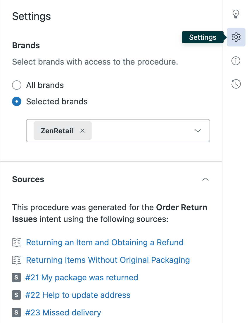 - To view the sources used to generated the procedures, click the gear icon