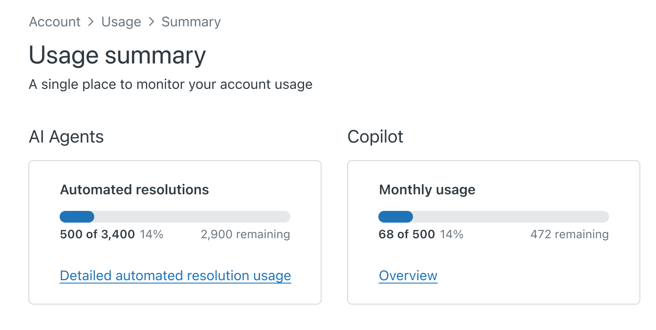 • Usage is pooled across all agents in your instance, so team members can share the monthly allowance as needed.
