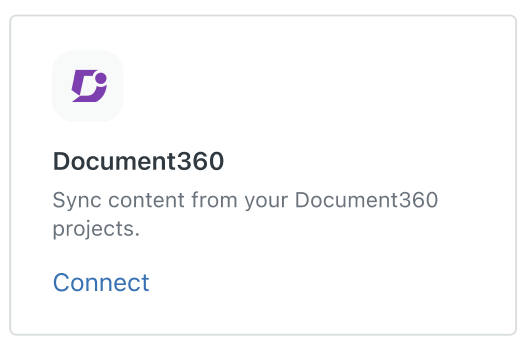 3. In the Document360 card at the bottom of the Connections page, click Connect.