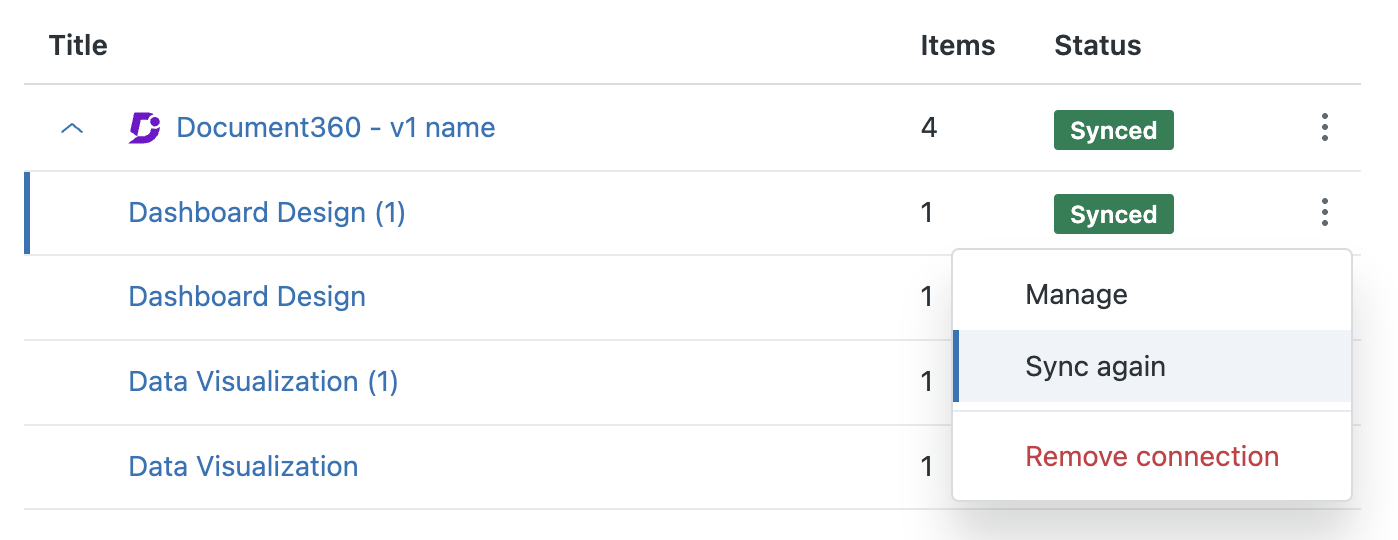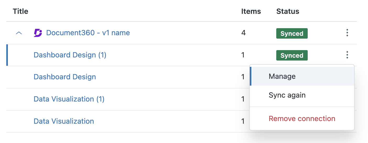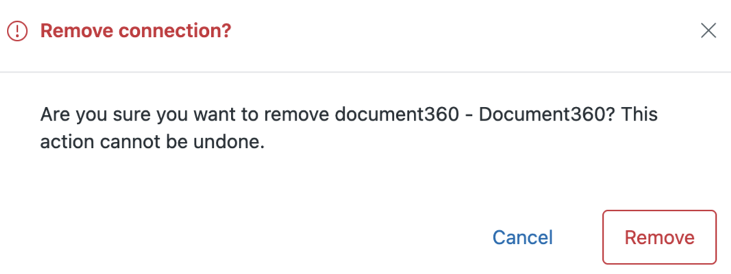 You can remove connections to Document360 workspaces if you no longer want to sync their content. If you remove a site connection, all space connections within that site will be removed. To remove an individual space connection but retain others within the site, remove the space connection only.