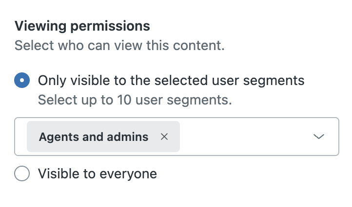 • Agents and admins: Includes team members only, so that you can create content that is internal-only.