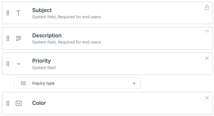 Note: You can only add active ticket fields to a ticket form. If you want to add a field that is not available, you need to activate that ticket field first.