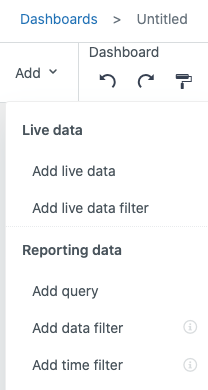 - Make sure that the dashboard you have opened is in edit mode. In the dashboard customization menu of Dashboard builder, click Add