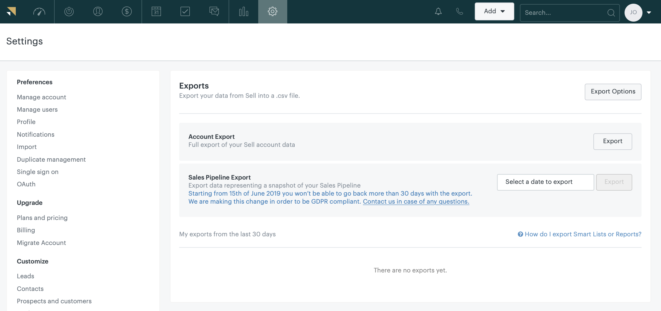 All users can now export data in Sell.