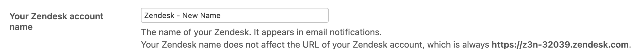You can change your account name to match your brand. This account name appears on page tabs in the Support interface and in email notifications sent to your customers. This section describes how to change your account name, to change the icon (favicon) that appears next to your Support account name, see Adding a custom favicon to your Support interface.