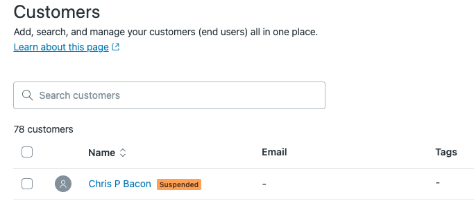 Admins and agents can suspend end users who disrupt operations or spam your organization. Suspended users can't sign in, and their requests go to the Suspended tickets view. You can unsuspend users to restore access. Identify suspended users by the "Suspended" tag on their profile and in the Suspended users list. Manage suspensions to maintain a focused support environment.