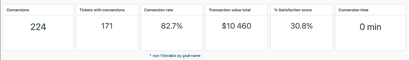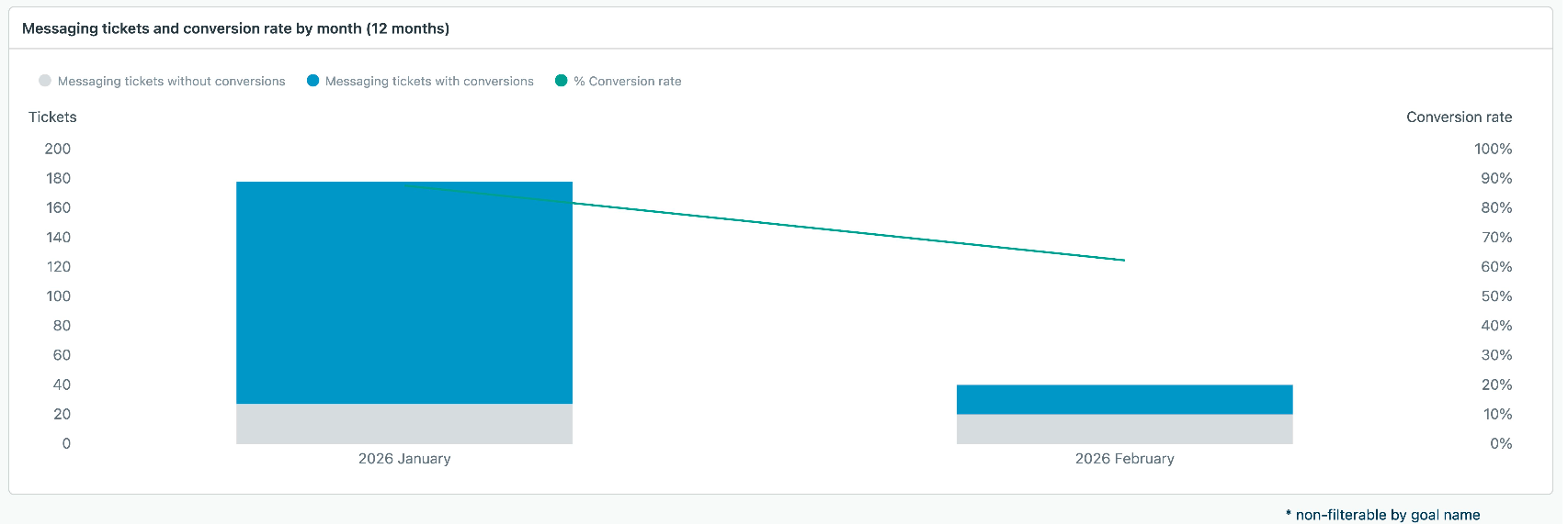 Conversion rate: The percentage of messaging tickets with goal conversions. This metric is not filterable by goal name.