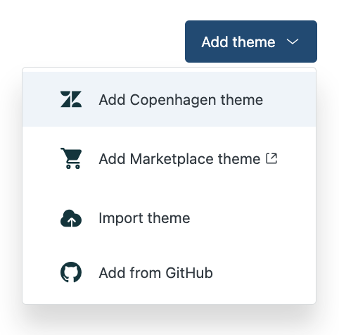 - Select the Add theme button and choose the Add Copenhagen theme option, which will not go live