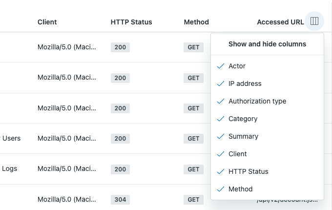 | Time | The time and date when the page or record was accessed, displayed in your account's time zone. If you're unsure what time the access log is using, hover over the information icon in the Time column heading. |