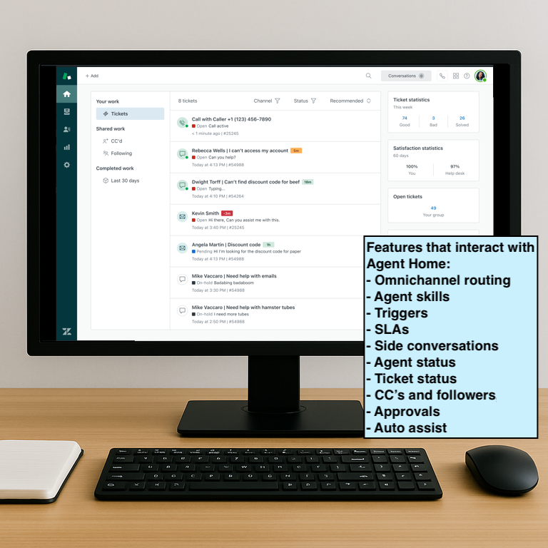 The more conversations that happen in Zendesk as email tickets, side conversations, or messages, the more relevant Agent Home becomes.