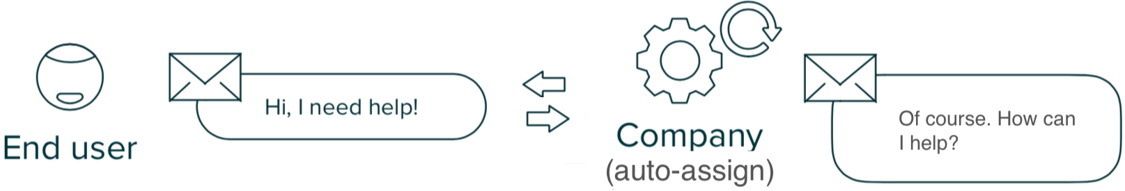 In this example, any ticket sent from an email channel will be assigned automatically to the first agent that adds a public reply or internal note to the ticket.
