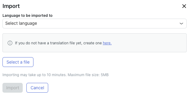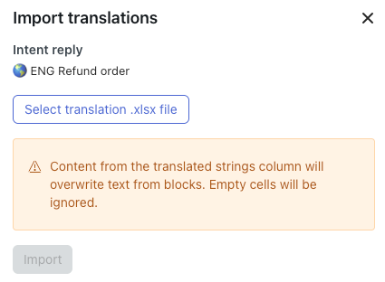 - Click Select translation .xlsx file and select the file you entered your translations in.