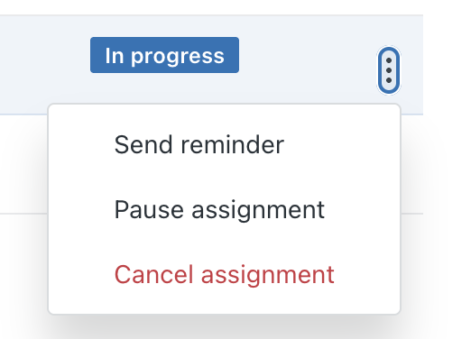 3. From the list of options, click Pause assignment, Resume assignment, Cancel assignment, or Send reminder.