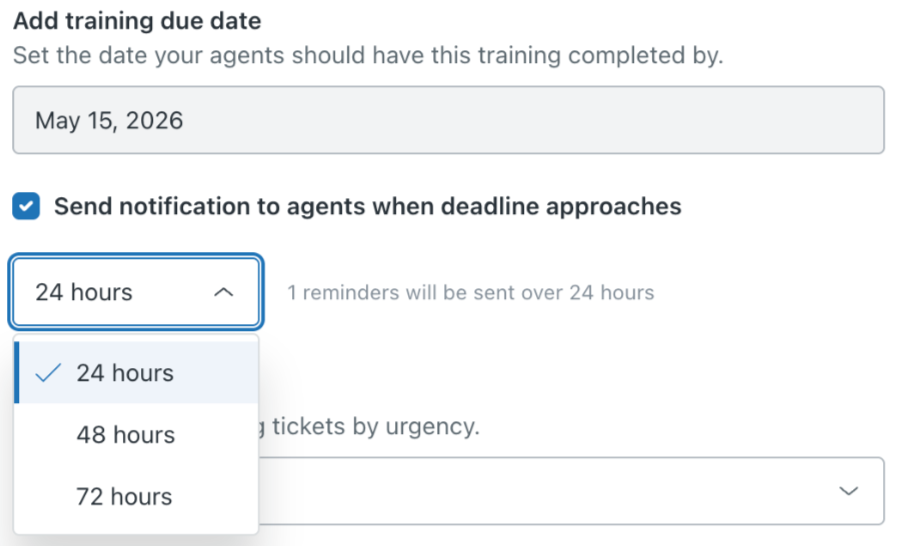 4. Choose the training due date. You can also choose to send agents a notification when the due date is approaching.