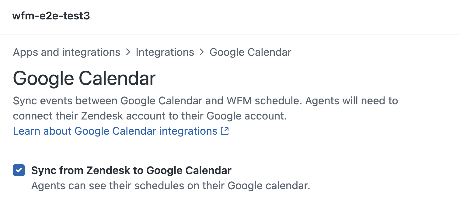 Admins can activate the Google Calendar integration for Zendesk WFM to allow agents to sync their Zendesk WFM intraday schedule with their Google calendar.