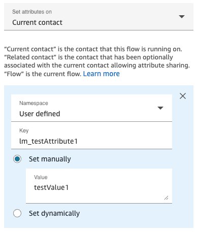 - Add a Set contact attributes block to the flow, to capture the attribute.