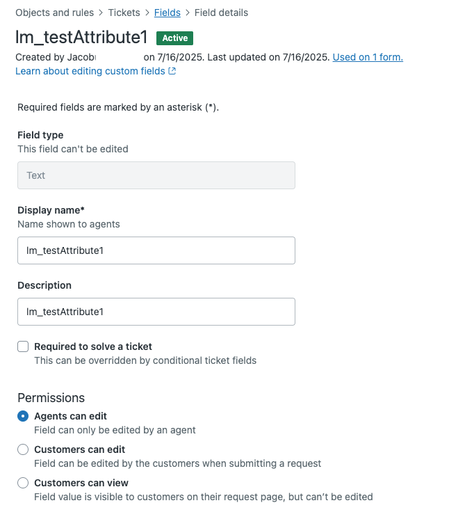 Objects and rules in the sidebar, then select Tickets > Fields. - Click Add field.