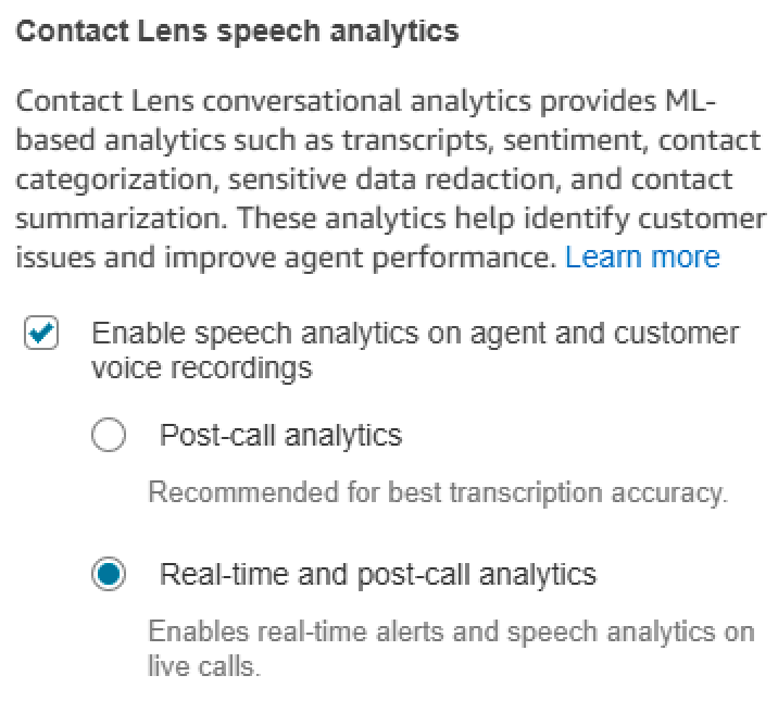 analytics and set it to Real-time and post-call analytics.