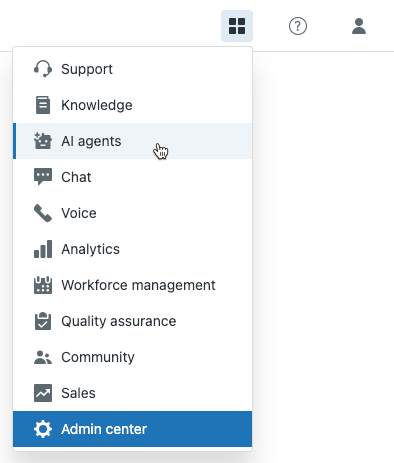 You can now access the AI agents - Advanced add-on directly from the Zendesk product tray from anywhere in the suite. To navigate to AI agents - Advanced, select “AI agents” from the product tray.