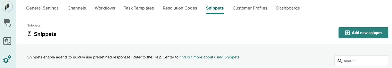 Use snippets to shorten the time spent typing by your agents thereby enabling faster responses, increasing efficiency, and improving the customer experience.