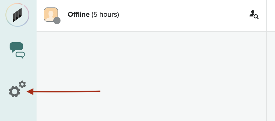 To access the Administrator settings in Engage for Amazon Connect, click on the cogs icon on the left-hand side of the screen.