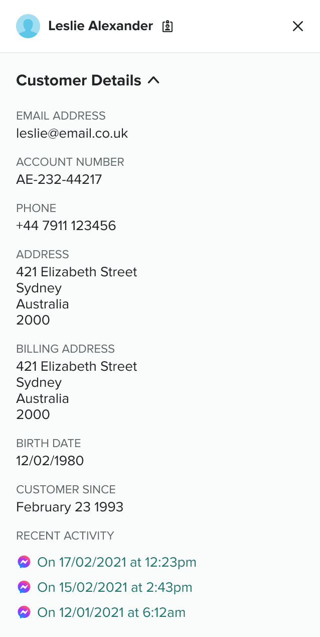 Engage classifies and displays customer details in specific panels on the Engage desktop. It searches for matching profiles for incoming contacts and either links or creates new ones. The contact display name in the UI relies on specific attributes with fallbacks if unavailable.