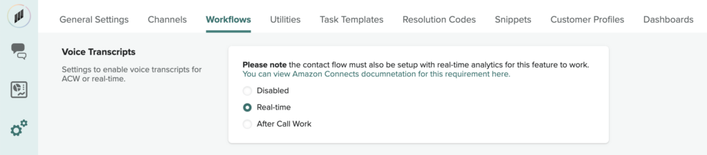 - Within the Contact Lens settings, enable the Real-time and post-call analytics option