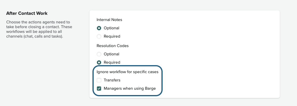 - Ensure Notes and Resolution Codes are correctly configured in Engage, as per the screenshot below: