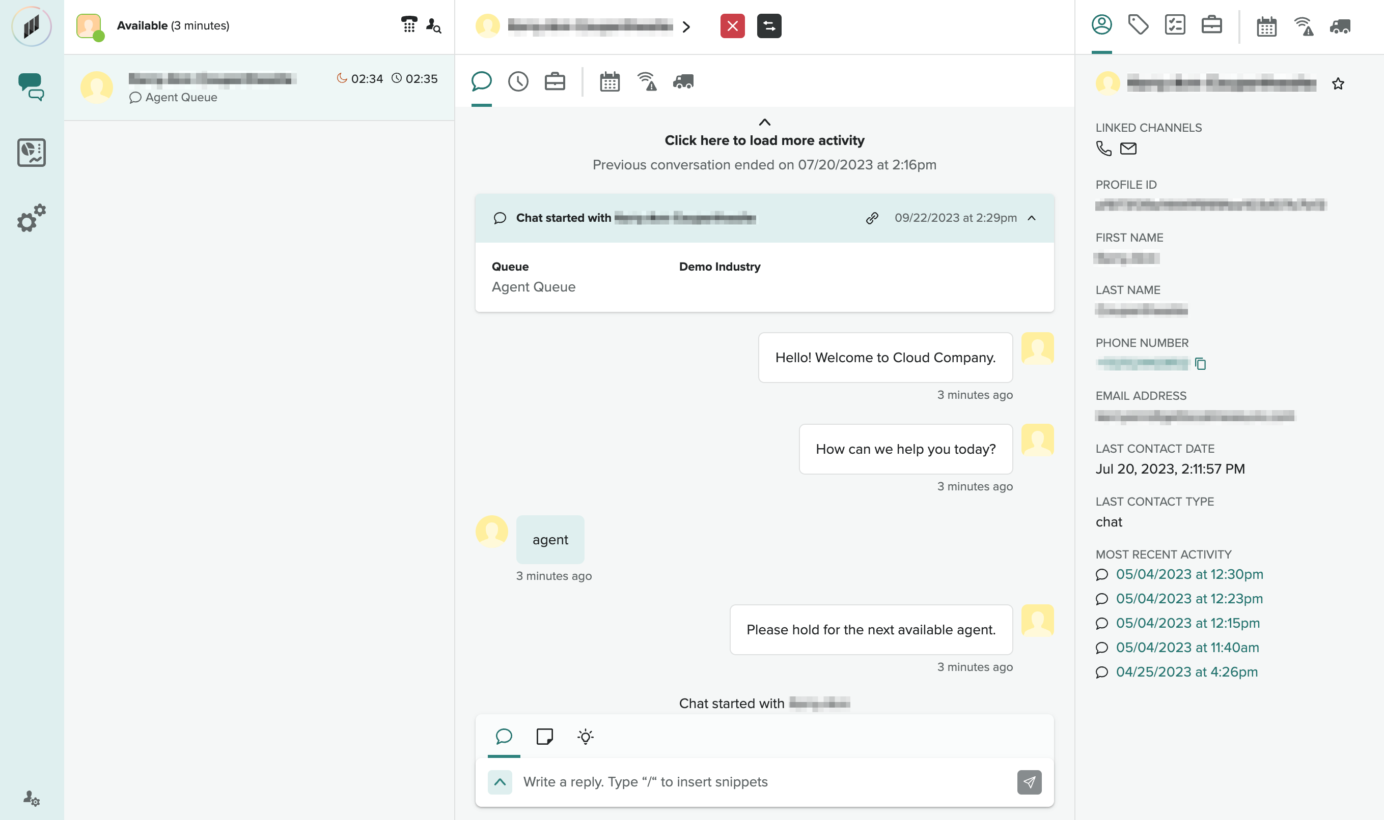 If a contact is associated with a Customer Profile, all available information about the contact will be shown on the right-hand side of your screen.