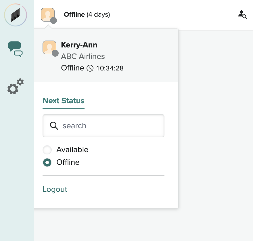 Note: You can only set your status to "Offline" once all of your conversations have been closed.