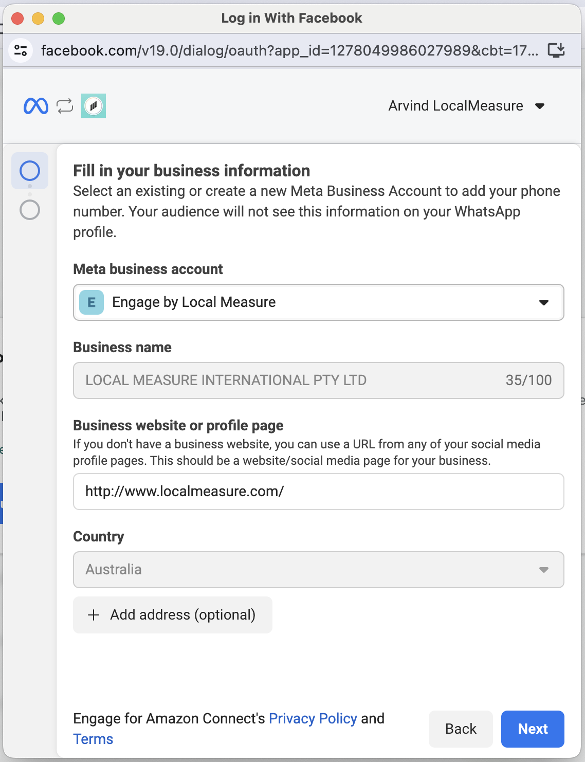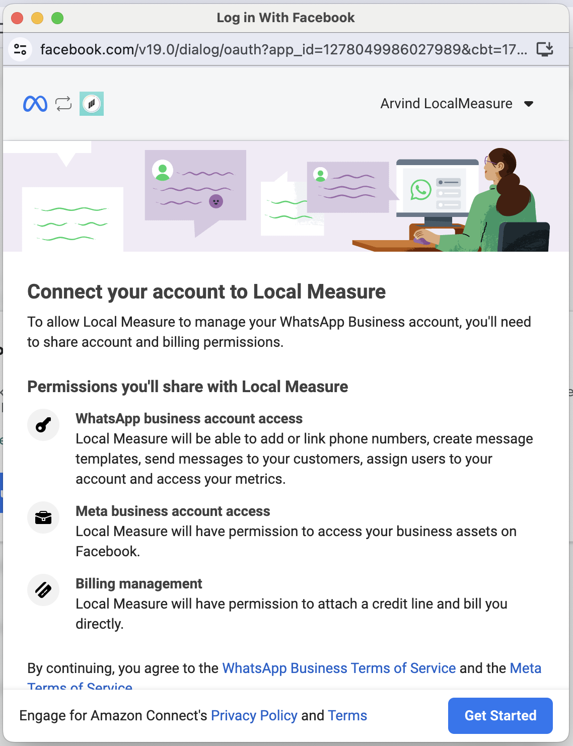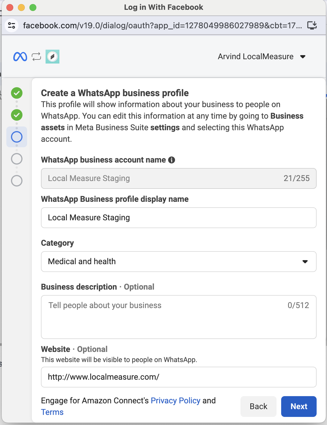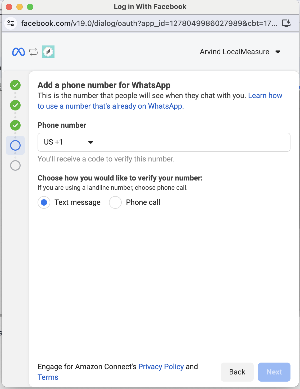 - Adding a WhatsApp Business channel to Engage for Amazon Connect requires a verified Facebook Business account. Please read this article about Verifying Your Business.