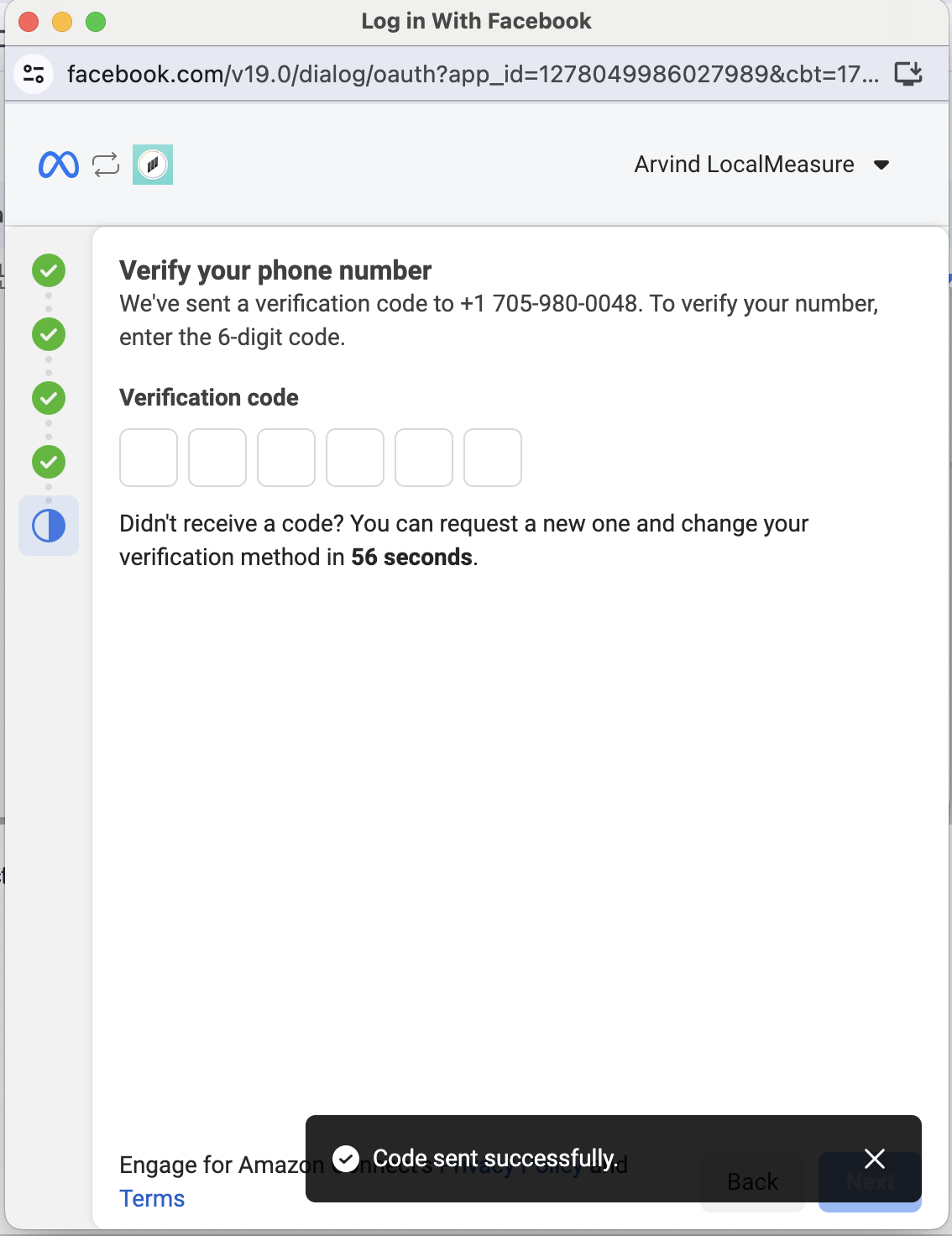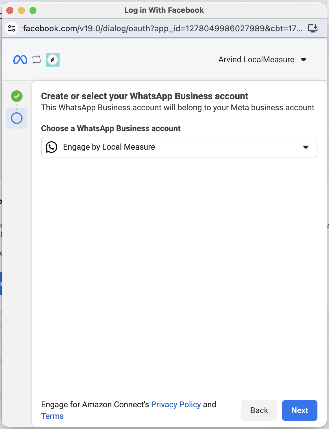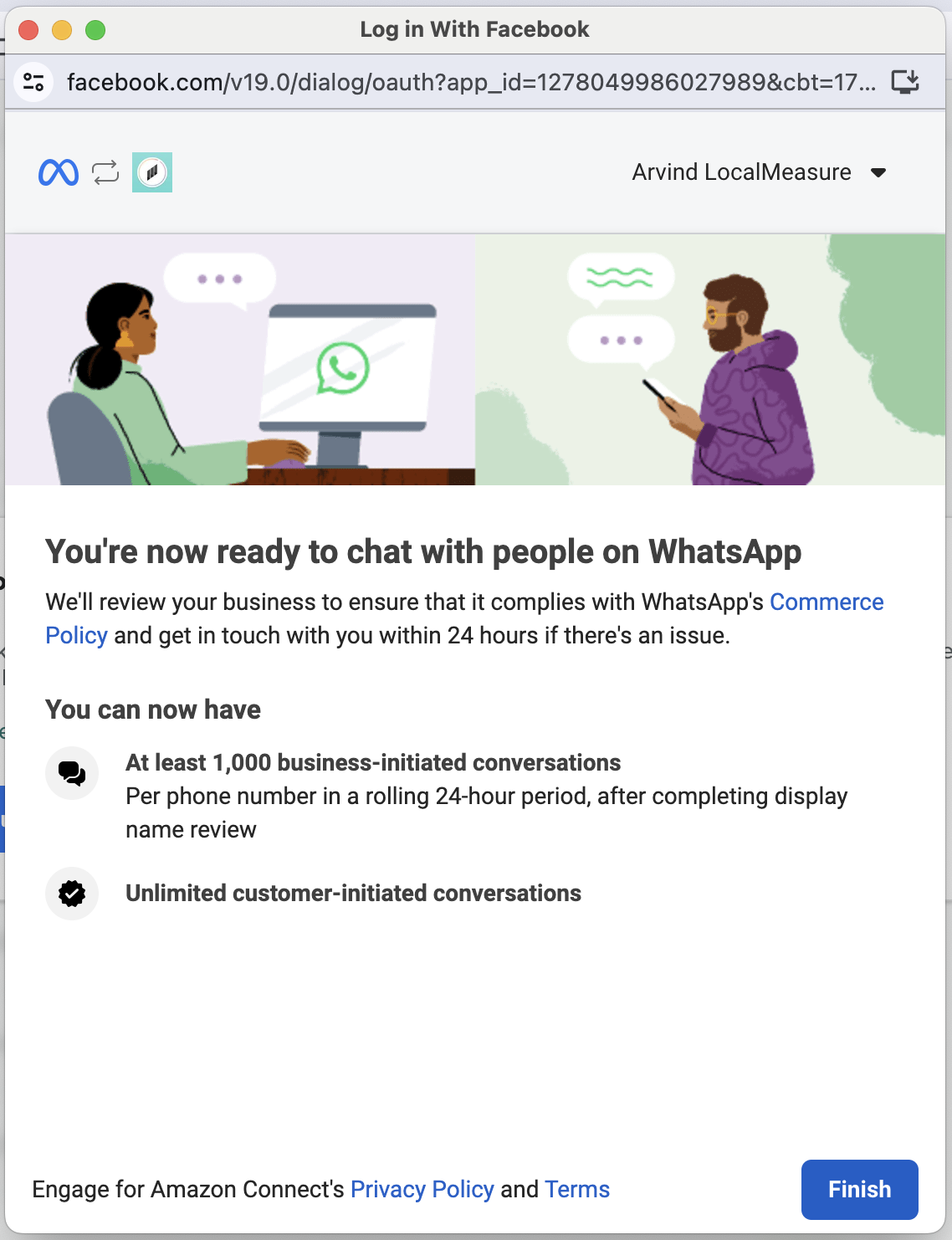 Click on Finish. At this point, you have shared access to your WABA to Local Measure.