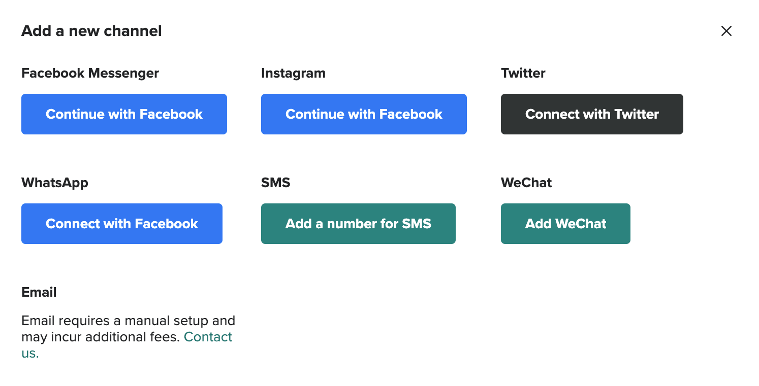 From this screen select to add the WhatsApp channel by clicking on the Connect with Facebook button.