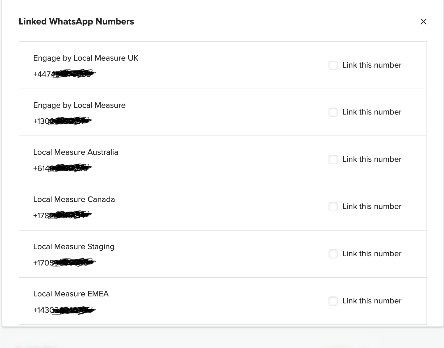 Click on Finish and you will be able to select the number you want to link to Engage.
