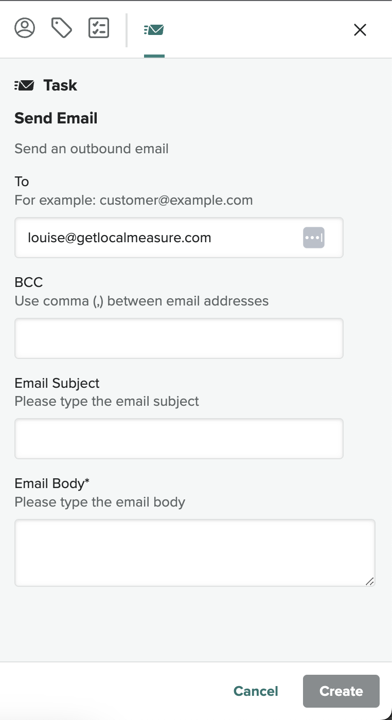 In the example below, an agent has to provide an email recipient, subject line, and body to carry out the email task.