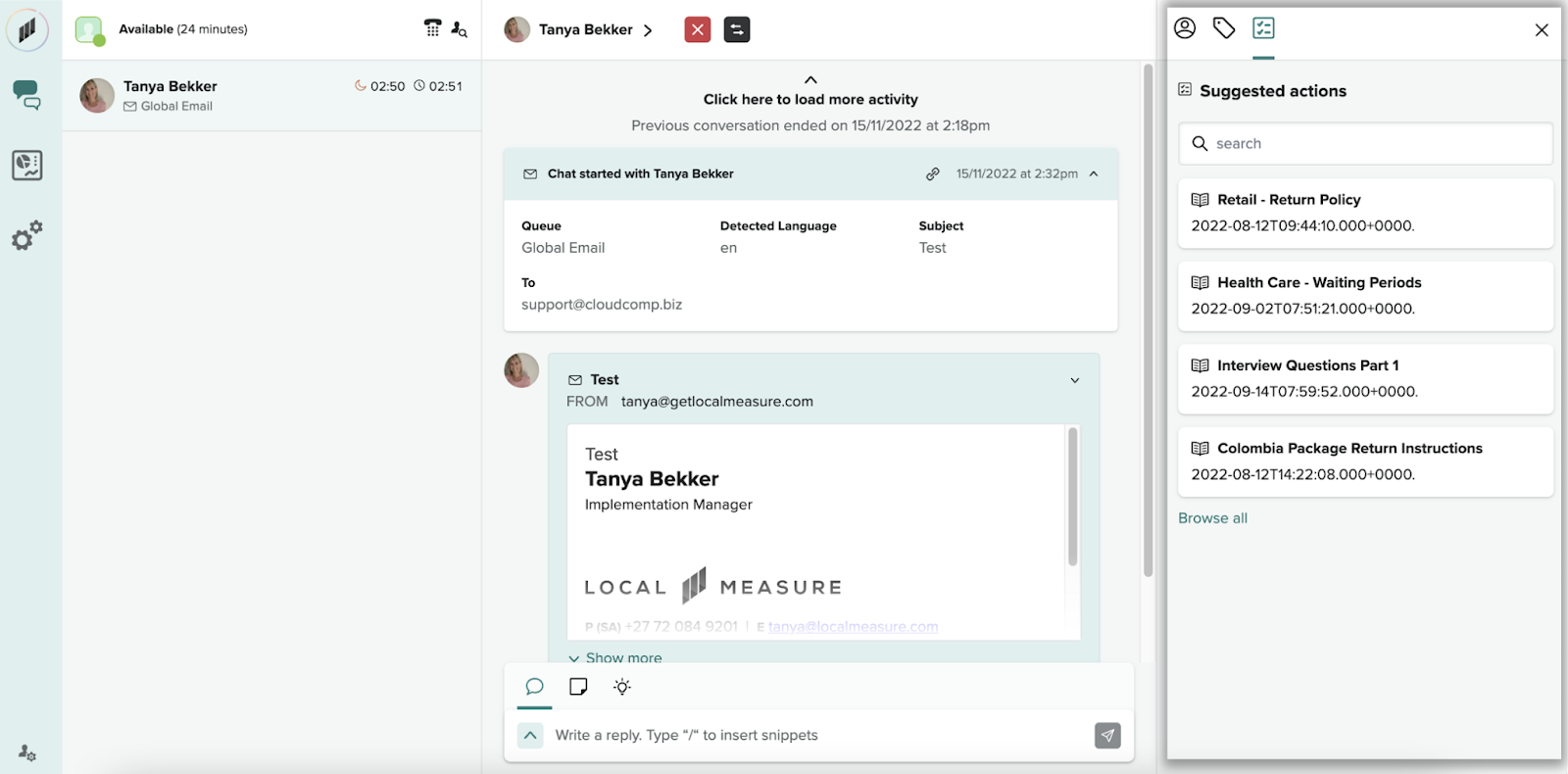 To access tasks in Engage whilst in a conversation, look on the right-hand side of the screen and click on the list icon.