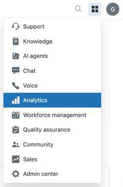 - In the Zendesk product tray, click Analytics.
